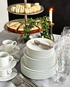 Vuokraa laadukkaat ja tyylikkäät astiat kevään ja kesän juhliin helpottamaan juhlajärjestelyjäsi. Astiat ovat valkoiset, tarjoiluastioissa myös teräksisiä vateja ym. Astioiden vuokra-aika on 3 vrk. Astiat voi palauttaa likaisina pientä korvausta vastaan, mutta halutessasi voit tiskata astiat myös itse. Myös kuljetus juhlapaikalle onnistuu tai voit noutaa astiat itse.