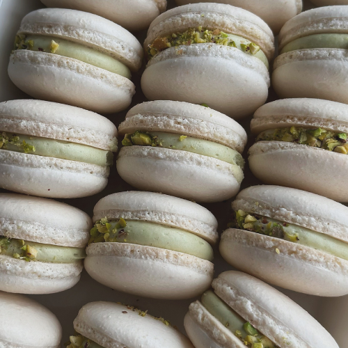 Pistaasimacaronien täytteenä on pistaasikreemiä ja pistaasipähkinöitä. Tuote on gluteeniton, mutta ei laktoositon.